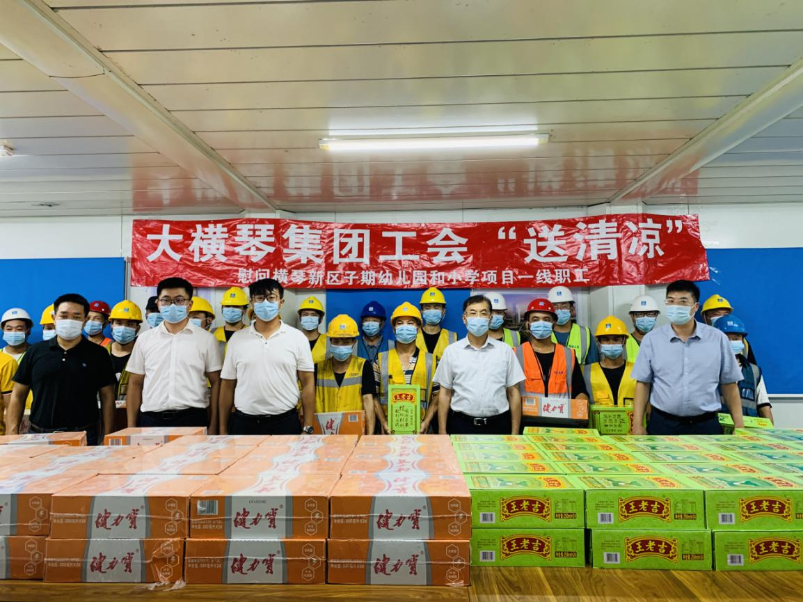 為進一步加強高溫作業(yè)職工勞動保護工作,關(guān)愛堅守在項目一線的建設(shè)者,2021年7月,大橫琴集團黨委書記、工會主席田偉帶隊分別赴科學(xué)城(二期)標(biāo)段一、標(biāo)段二項目、橫琴醫(yī)院項目、橫琴新區(qū)子期幼兒園和小學(xué)及保稅一小工程項目開展夏日送清涼慰問活動。