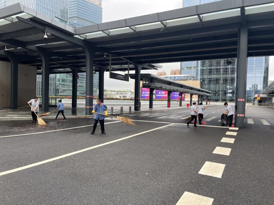 第一時(shí)間對(duì)園區(qū)環(huán)境進(jìn)行清障復(fù)原,完成園區(qū)所有枯樹(shù)樹(shù)葉清理、樹(shù)木扶正,樹(shù)撐檢查加固;完成園區(qū)公共垃圾桶、煙灰柱、地毯復(fù)原工作;檢查受災(zāi)情況并進(jìn)行修復(fù),檢查設(shè)備機(jī)房、電梯是否正常運(yùn)行等,確保企業(yè)可正常辦公。其中橫琴國(guó)際科創(chuàng)中心園區(qū)應(yīng)急避難場(chǎng)所本次接待人員約1500人次,產(chǎn)生生活垃圾約3噸,人員撤離后已及時(shí)清理。