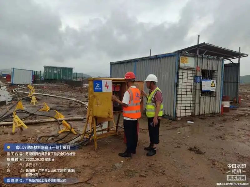 在斗門大橫琴5.0產(chǎn)業(yè)新空間萬(wàn)鋰新材料(一期)項(xiàng)目現(xiàn)場(chǎng),開(kāi)展了臺(tái)風(fēng)后復(fù)工復(fù)產(chǎn)安全大檢查,現(xiàn)場(chǎng)組織排水、圍擋修復(fù)各項(xiàng)工作。