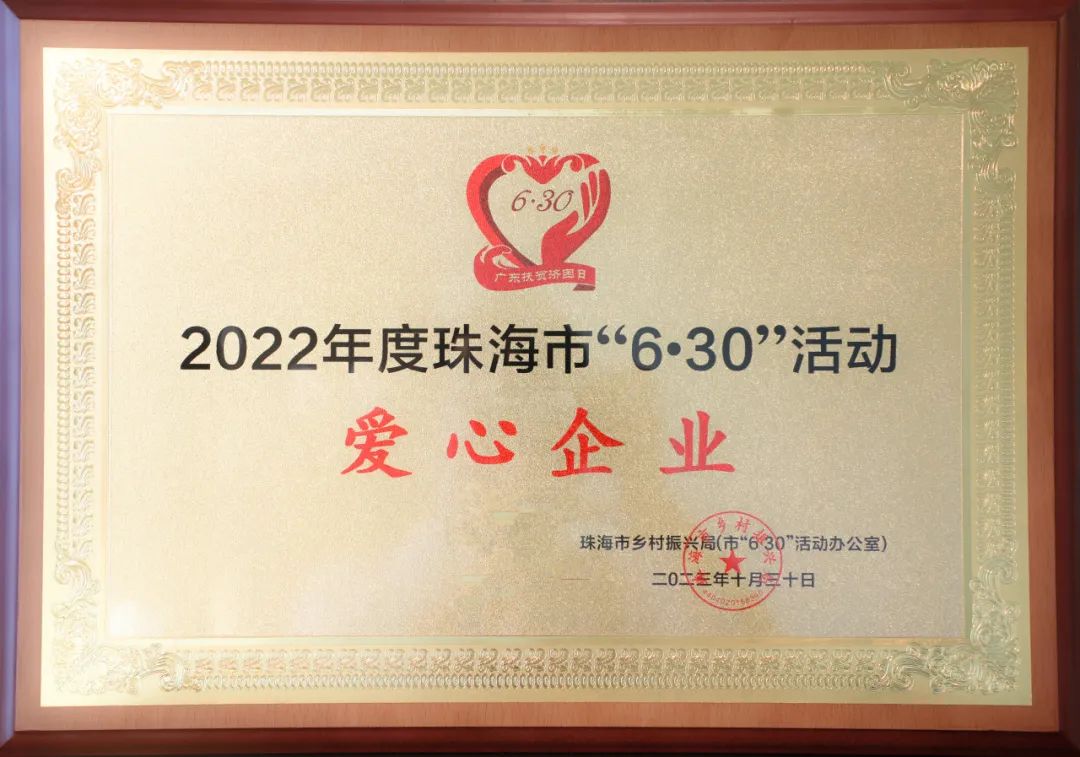 為深入貫徹黨的二十大和中央農(nóng)村工作會(huì)議精神,落實(shí)市委、市政府關(guān)于統(tǒng)籌實(shí)施鄉(xiāng)村振興戰(zhàn)略和“百縣千鎮(zhèn)萬(wàn)村高質(zhì)量發(fā)展工程”工作部署,匯聚更多社會(huì)力量參與“6·30”活動(dòng),鞏固脫貧成果、助力鄉(xiāng)村振興、促進(jìn)共同富裕,根據(jù)《中共珠海市委農(nóng)村工作領(lǐng)導(dǎo)小組〈關(guān)于印發(fā)珠海市2023年“6·30”助力鄉(xiāng)村振興活動(dòng)工作方案〉的通知》(珠委農(nóng)組〔2023〕6號(hào))精神,市鄉(xiāng)村振興局(市6·30活動(dòng)辦)開(kāi)展2022年度珠海市“6·30”活動(dòng)“愛(ài)心企業(yè)、愛(ài)心團(tuán)體、愛(ài)心個(gè)人”評(píng)選活動(dòng),向社會(huì)傳遞珠海人民樂(lè)善好施的精神品德,激發(fā)社會(huì)各界共襄善舉、助力鄉(xiāng)村振興。經(jīng)評(píng)審,珠海大橫琴集團(tuán)有限公司(以下簡(jiǎn)稱(chēng)大橫琴集團(tuán))被授予2022年度珠海市“6·30”活動(dòng)“愛(ài)心企業(yè)”榮譽(yù)稱(chēng)號(hào)。