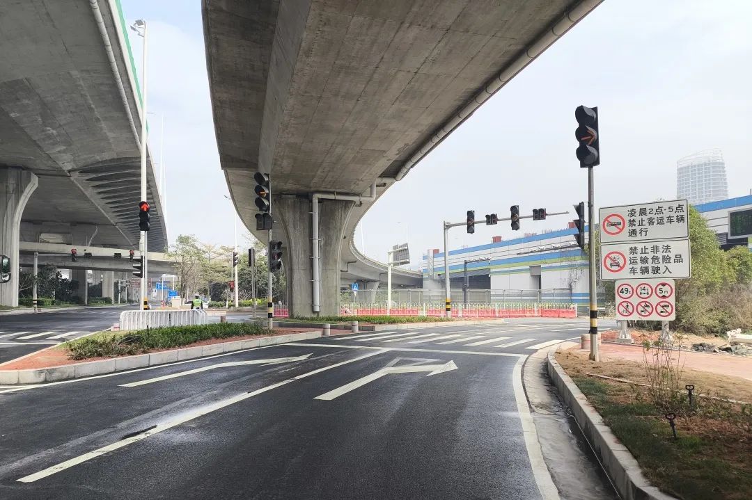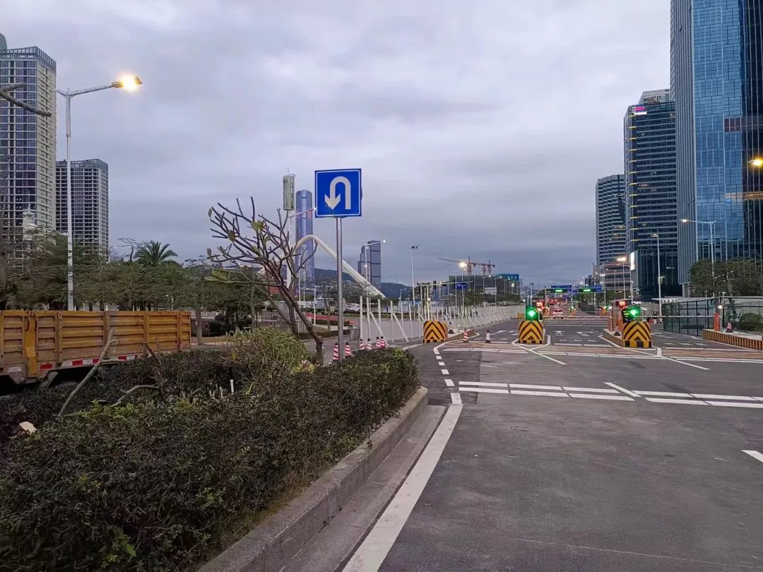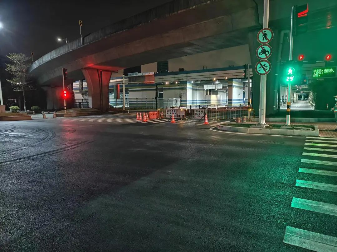 對深井通道“二線”通道內(nèi)有局部破損、高差的道路進行維修,共計維修瀝青路面990㎡,有效提高了該段道路行車的安全性和舒適性。此外,通過改造交通信號燈、拓寬車道、將綠化帶改造為瀝青路面等多種方式,進一步優(yōu)化交通組織,保障道路交通秩序環(huán)境安全有序。