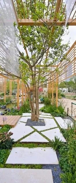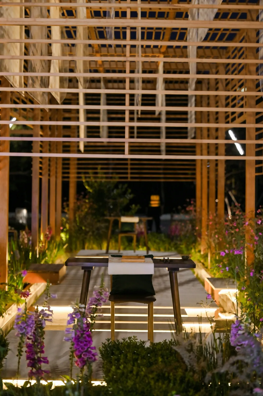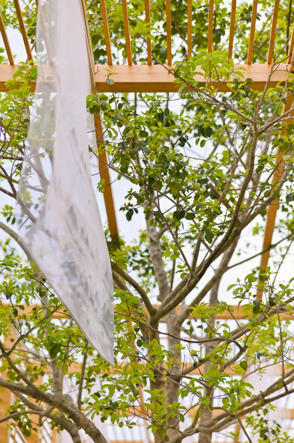 樹(shù)影婆娑,花香四溢,檸檬草、龍井茶、毛尖、柑橘、迷迭香等香草類植物,洋溢著沁人的花草清香,與茶文化主題交織呼應(yīng)。
