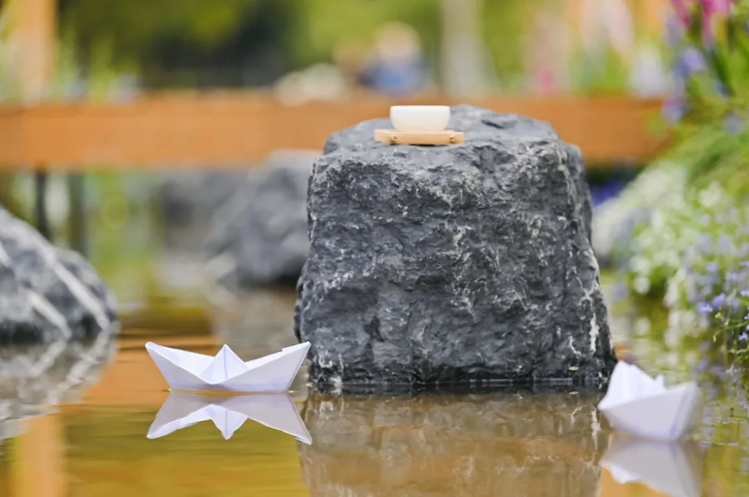 歷史上,珠三角是明清海上絲綢之路上的重要樞紐,中國(guó)的茶與茶文化通過(guò)海上絲綢之路傳遍世界各地。橫琴展園以流動(dòng)水渠與懸挑水上茶品,巧妙象征了從明清海上絲綢之路到現(xiàn)代共建“一帶一路”的歷史傳承。