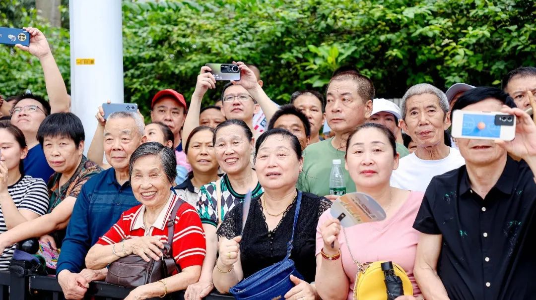 “我每年都和爸爸媽媽一起來(lái)看龍舟賽,現(xiàn)場(chǎng)的氛圍太震撼了!作為斗門(mén)人,我感到非常開(kāi)心和自豪?!倍烽T(mén)小觀眾彥宏開(kāi)心地說(shuō)。與此同時(shí),不少游客專門(mén)從外地趕來(lái)觀賞這場(chǎng)“水上競(jìng)技盛宴”。在眾多觀眾中,來(lái)自南屏的歐先生是龍舟賽的“鐵桿粉絲”,盡管的腿部受傷,他也要雙手拄著拐杖,全程站著關(guān)注觀賽。