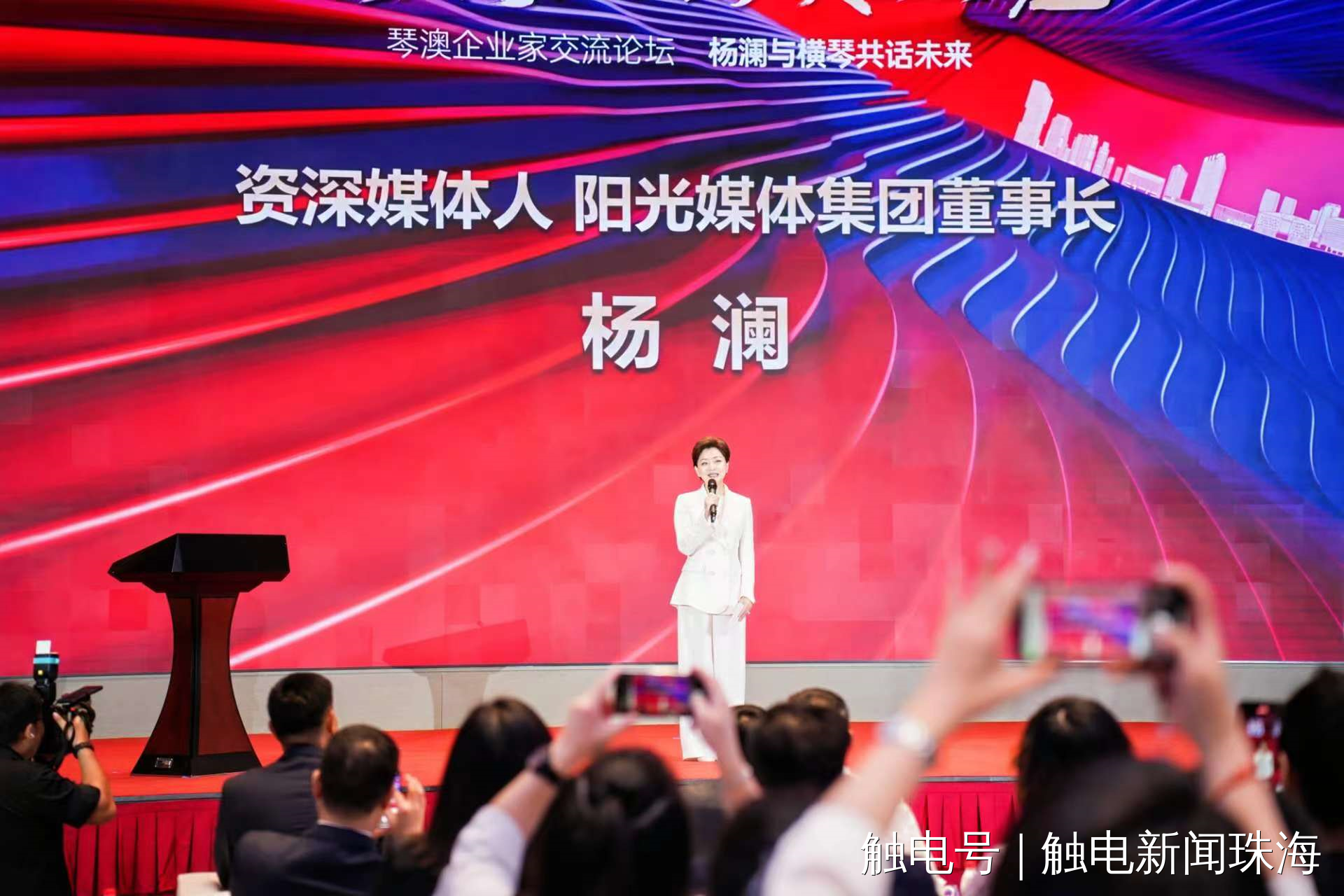 9月22日,由橫琴粵澳深度合作區(qū)(以下簡稱“合作區(qū)”)經(jīng)濟(jì)發(fā)展局支持,大橫琴集團(tuán)、叡智蓮花公關(guān)服務(wù)有限公司聯(lián)合主辦的“潮涌大灣區(qū)·琴澳企業(yè)說”琴澳企業(yè)家交流論壇活動成功舉辦。繼“潮涌大灣區(qū)·澳門青年說”論壇后,大橫琴集團(tuán)再次攜手資深媒體人、陽光媒體集團(tuán)董事長楊瀾女士,匯聚來自新能源、科技材料、人工智能等各行各業(yè)共500多位代表和嘉賓,共議企業(yè)家時代策略,共繪琴澳發(fā)展新篇章。合作區(qū)民生事務(wù)局局長黃宇杰,大橫琴集團(tuán)黨委副書記、董事、總經(jīng)理王宇聲,資深媒體人、陽光媒體集團(tuán)董事長楊瀾,澳門大灣區(qū)金融商會創(chuàng)會主席李偉杰,大橫琴集團(tuán)副總經(jīng)理姜平等領(lǐng)導(dǎo)嘉賓出席活動。