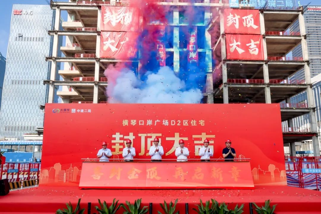 9月27日上午,由珠海大橫琴集團(tuán)有限公司(以下簡(jiǎn)稱大橫琴集團(tuán))下屬企業(yè)珠海大橫琴口岸實(shí)業(yè)有限公司建設(shè)的橫琴口岸D2區(qū)住宅主體結(jié)構(gòu)順利封頂。大橫琴集團(tuán)黨委副書記、董事、總經(jīng)理王宇聲,中建二局華南公司黨委書記、董事長(zhǎng)曲紅波,大橫琴集團(tuán)總經(jīng)理助理呂海濤等領(lǐng)導(dǎo)嘉賓出席儀式,各參建單位代表及項(xiàng)目一線職工共計(jì)100余人參加活動(dòng)。