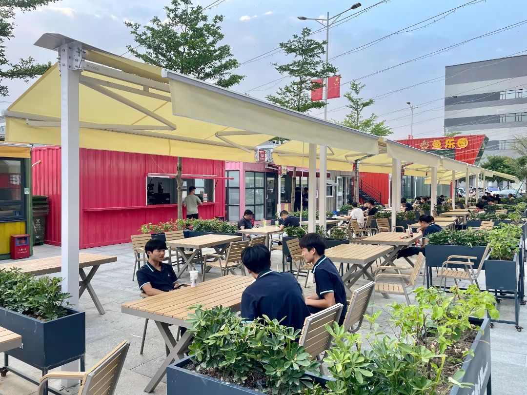 富山街市位于斗門大橫琴5.0產(chǎn)業(yè)新空間,坐落于B區(qū)公服中心西側(cè),占地面積1200㎡,有11個(gè)攤位,多個(gè)五顏六色的集裝箱錯(cuò)落有致,儼然是工廠風(fēng)的商務(wù)區(qū)—“廠BD”。