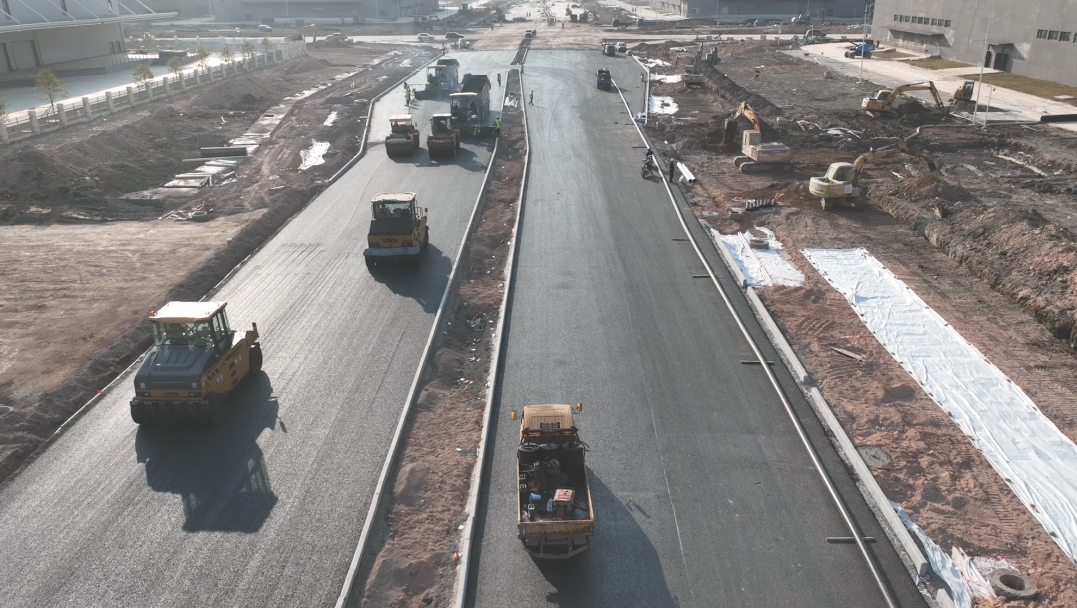富山工業(yè)園二圍北片區(qū)園區(qū)配套道路工程是斗門大橫琴5.0產(chǎn)業(yè)新空間的重要配套,為二圍北逾200萬平方米的廠房提供交通、水電等配套設(shè)施,包含13條市政道路,總長約 15.55公里,建設(shè)意義重大,大橫琴股份為確保項目高效推進(jìn),克服地質(zhì)條件復(fù)雜、施工界面狹小等重重難關(guān),調(diào)集“人馬”,對緊要工序安排24小時連續(xù)作業(yè),對危險性不高、工期緊迫的工序安排雙班作業(yè),與時間賽跑。