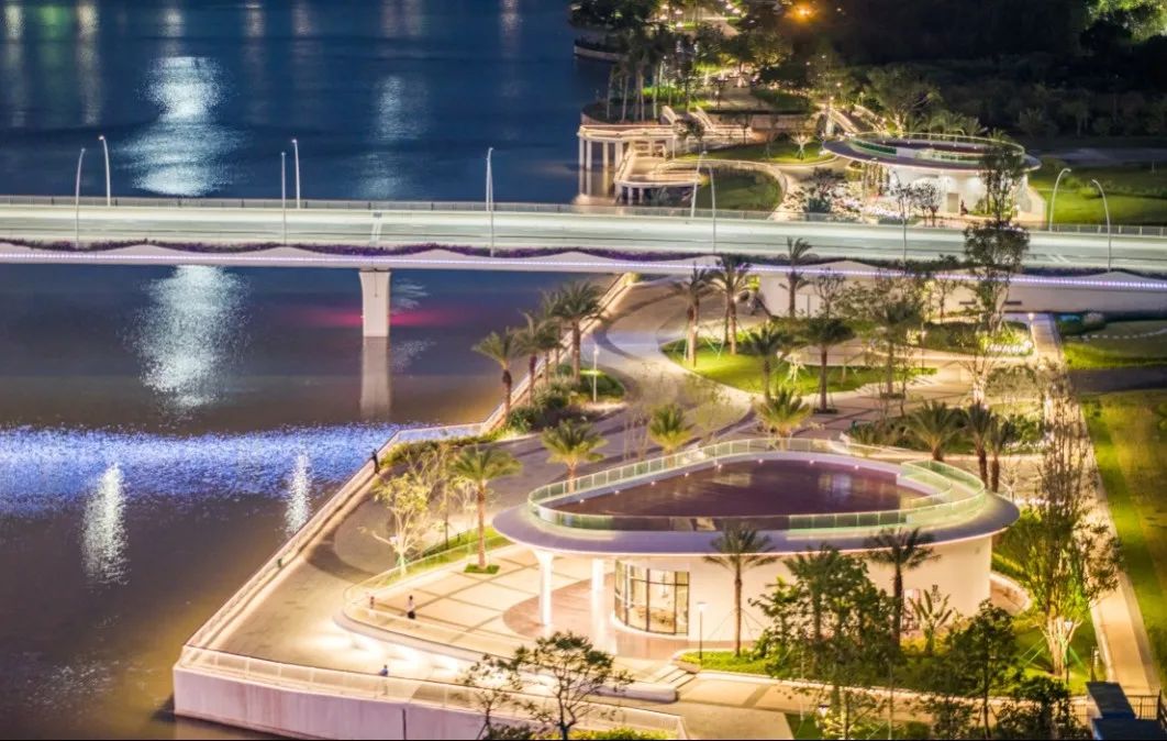 當(dāng)夜幕降臨,橫琴天沐琴臺(tái)絕美的夜景更加美輪美奐,震撼迷人,璀璨的燈光如同繁星般點(diǎn)綴在這把“古琴”之上,與周邊高樓大廈的霓虹燈共同組成一幅流動(dòng)畫(huà)卷。