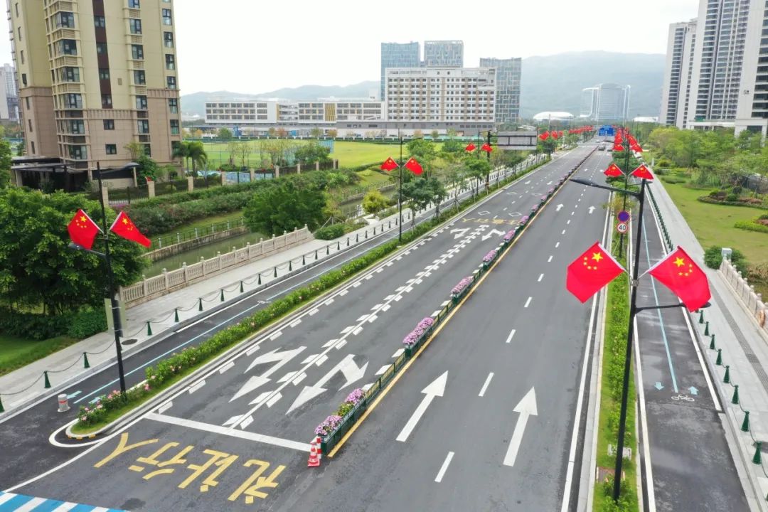 為助力營造濃厚的節(jié)日氛圍,大橫琴城資在橫琴大橋、環(huán)島東路、天羽道、港澳大道、環(huán)島北路等重點道路沿線懸掛1560面國旗。