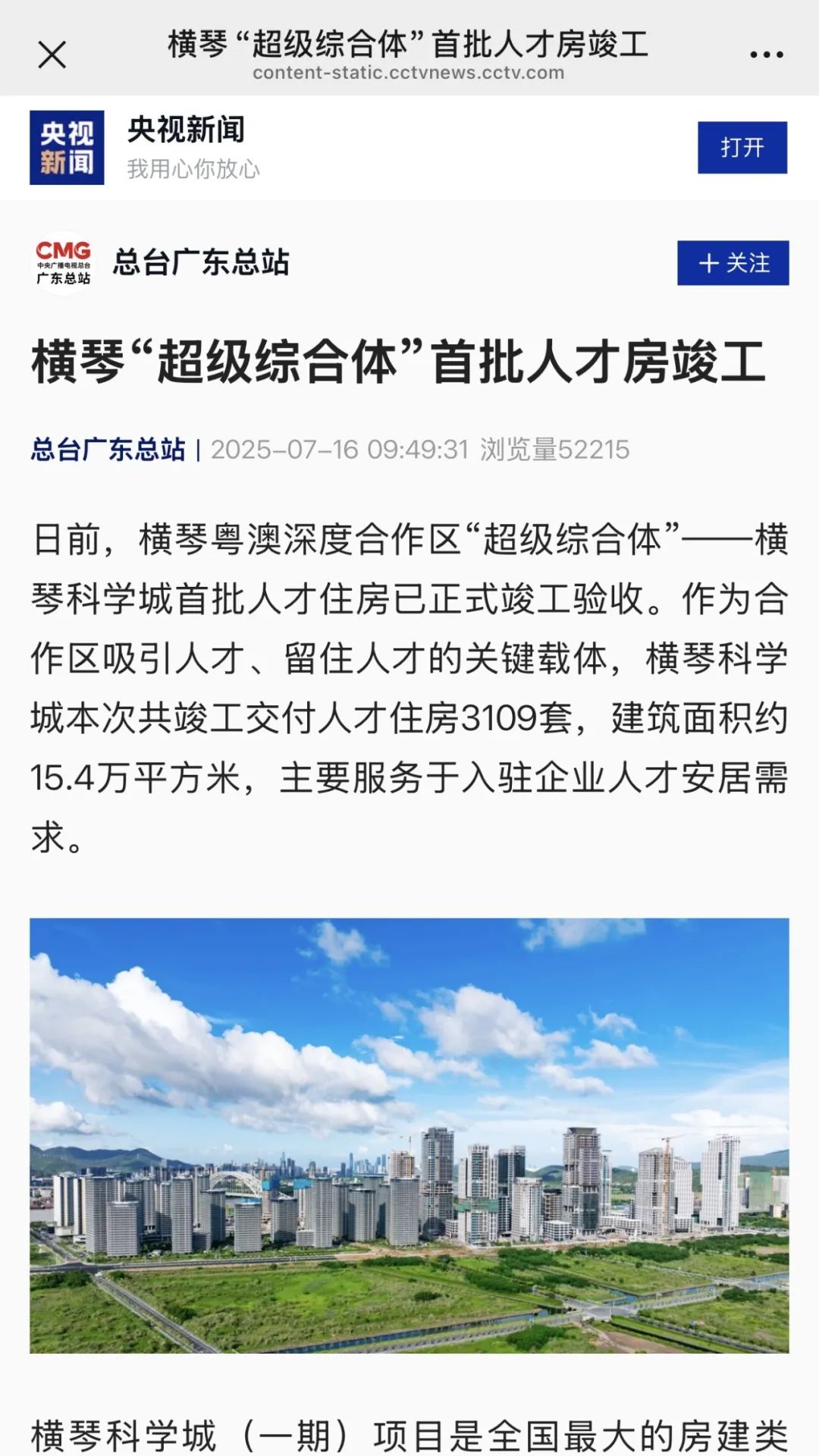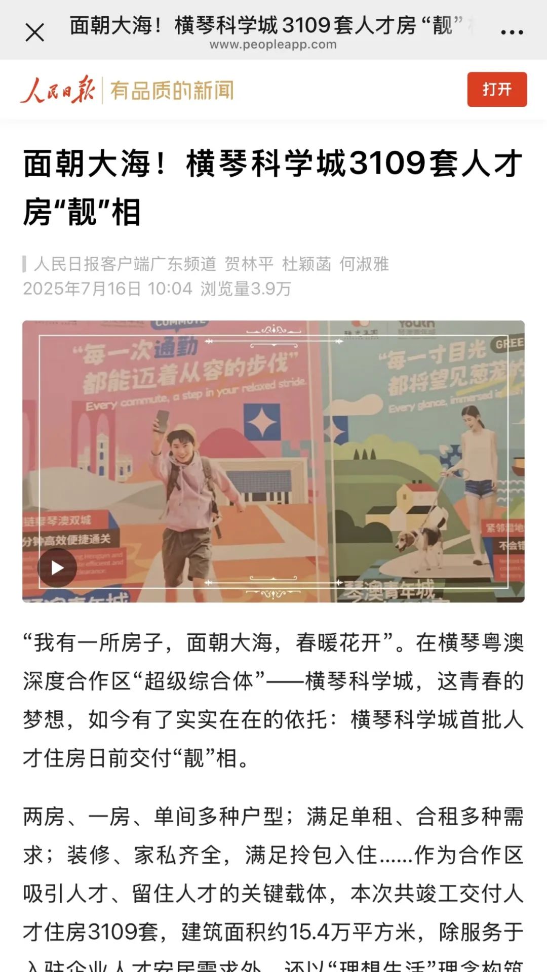 7月15日,在橫琴科學城首批人才住房正式竣工驗收之際,由中央廣播電視總臺、新華社、人民日報、南方日報、南方都市報、羊城晚報、澳門日報等近二十家權威媒體組成的媒體團,齊聚橫琴科學城(一期)現場展廳。作為珠光集團精心打造、助力合作區(qū)吸引人才和留住人才的關鍵載體,本次首批人才住房包括2棟人才住房,5棟公寓,可提供住房3109套。其中,2200套公寓由珠光集團運營管理,打造“琴澳青年城”,通過“理想生活”概念構筑灣區(qū)青年人才社區(qū),重新定義琴澳新青年的生活新方式。聽取項目介紹后,媒體團一行深入項目C區(qū)(琴澳青年城)樣板間參觀采訪。