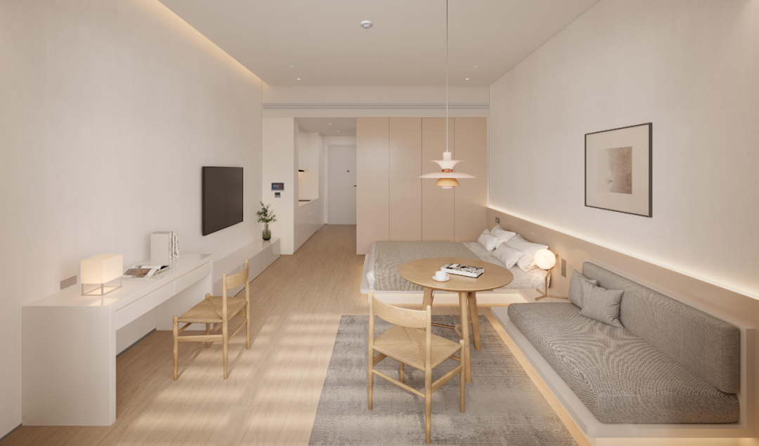不遠(yuǎn)處的專家公寓則流淌著東方的靜謐詩意。日本建筑學(xué)會前會長仙田滿院士以幾何哲學(xué)解構(gòu)三角地塊:階梯狀基座銜接城市道路,垂直塔樓上升至百米高空。138套公寓從37平方米單房到207平方米頂層豪宅,均配備泳池與會所。退臺式的立面構(gòu)成,使每位歸家的科研精英都能在窗前遇見不同的風(fēng)景——這是珠光集團(tuán)對人居關(guān)懷的立體詮釋。