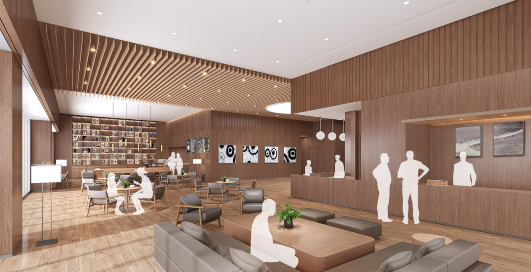 建筑組團(tuán)中央,通高兩層的“城市客廳”成為思想碰撞的熔爐;三層空中云臺通過有蓋廊道串聯(lián)樓宇,形成全天候的公共步行紐帶;而垂直分布的空中花園與地面綠脊,共同構(gòu)建出覆蓋率超30%的生態(tài)綠脈。