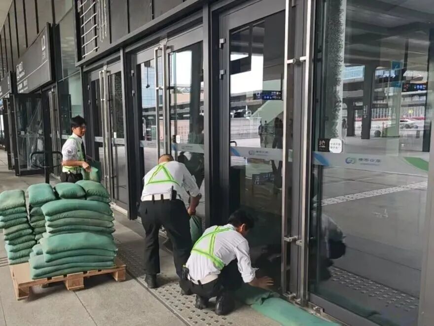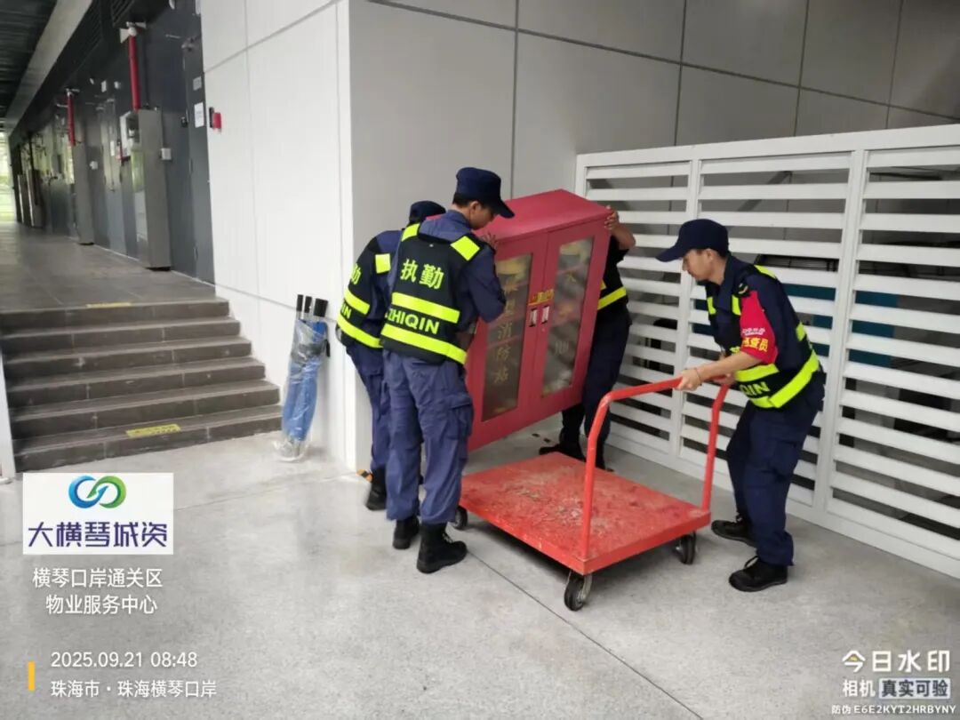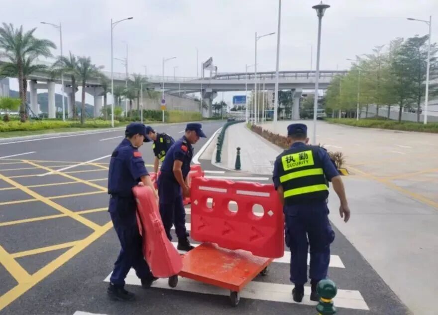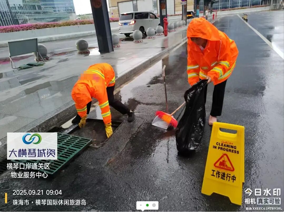 在橫琴口岸區(qū)域,提前排查200多個集水井,調(diào)集230個緊固件加固門窗,近3000條沙袋、近100個防洪擋板、11臺水泵等應(yīng)對福臨道、地庫36處接駁口、負(fù)二層下沉庭院、U行車道等重點(diǎn)區(qū)域強(qiáng)排和封堵需要。同時(shí)對通關(guān)區(qū)域的100余扇玻璃門進(jìn)行加固,在易水浸區(qū)域放置沙袋、擋板。同時(shí),全面清理雨水井、排水溝渠,確保排水暢通。